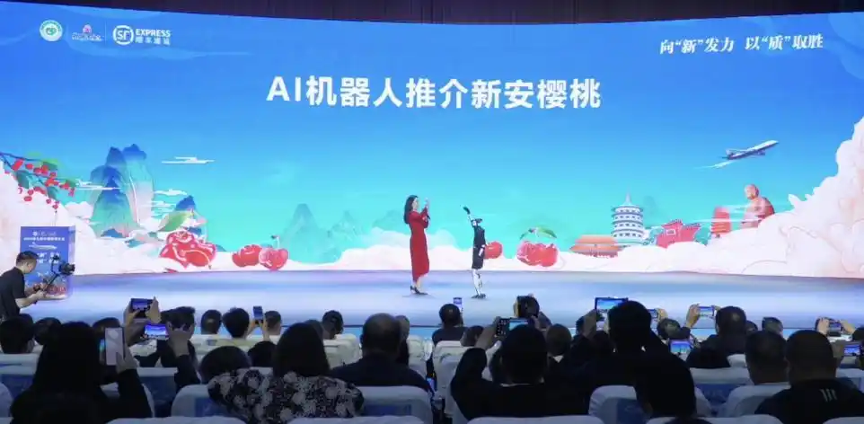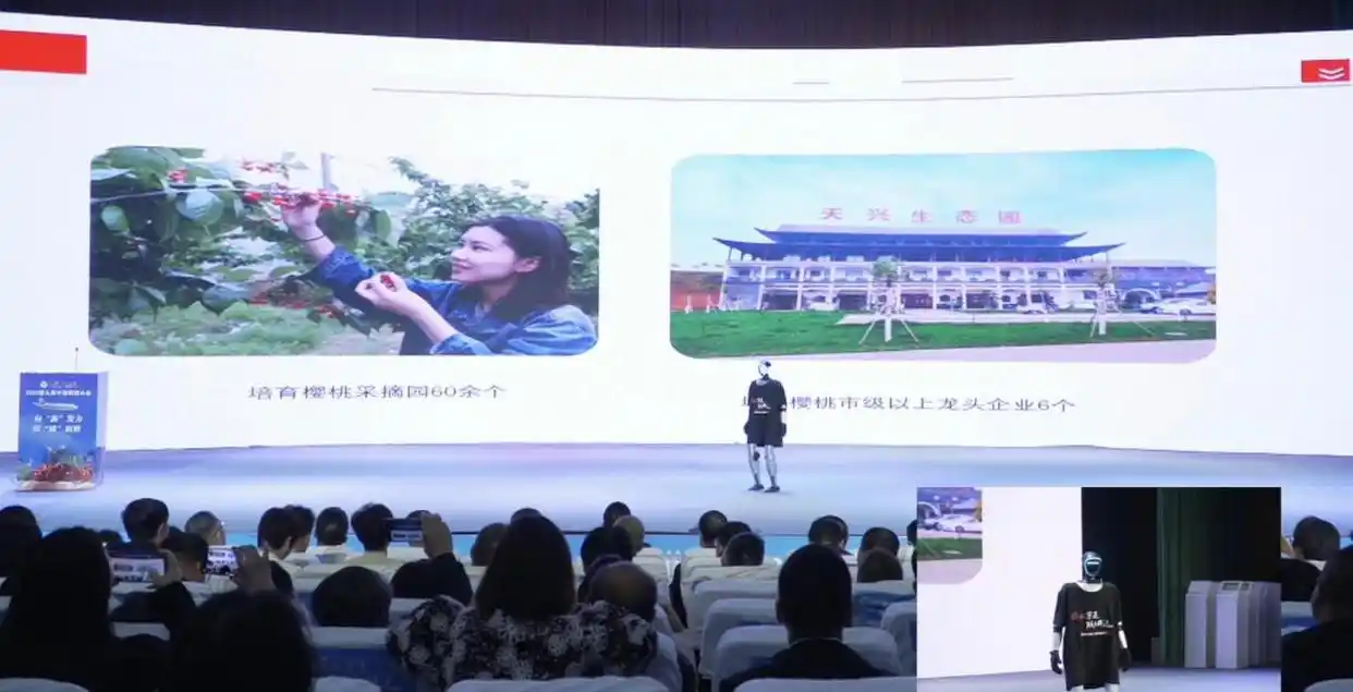 作为本届中国樱商大会的创新之举,“AI机器人推介新安樱桃”环节以数字化、智能化形式惊艳全场,成为科技与农业深度融合的典范。