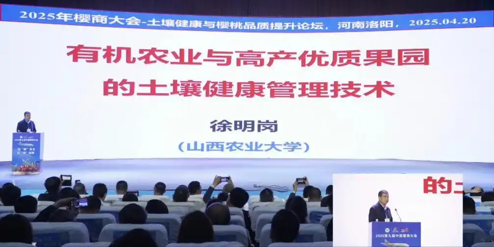 在4月20日的“主旨报告”环节,院士、行业专家齐聚一堂,直击产业技术瓶颈。中国工程院院士徐明岗提出“土壤健康管理是果园可持续发展的根基”,系统阐述有机肥替代、微生物修复等前沿技术。