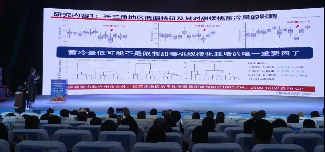 国家现代桃产业技术体系樱桃栽培技术岗位科学家、上海交通大学农业与生物学院教授张才喜做了“适应气候变化的甜樱桃栽培及育种”的主旨报告,该报告以科学数据为支撑,直面全球气候变化对樱桃产业的严峻挑战,提出系统性解决方案,为全国樱桃产区应对环境风险、实现可持续发展提供了重要技术路径,引发与会专家与从业者的高度关注。